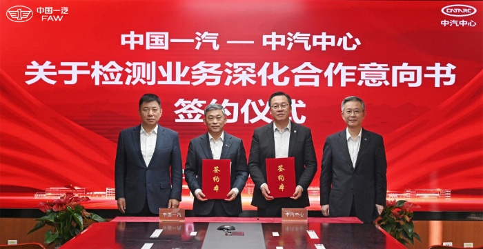 ▲中國一汽與中汽中心簽署檢測(cè)業(yè)務(wù)深化合作意向書