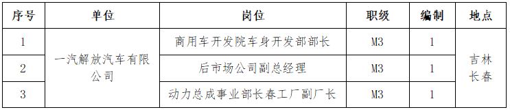 根據(jù)工作需要,現(xiàn)對一汽解放汽車有限公司部分高級經(jīng)理崗位面向社會公開招聘,具體內容如下: